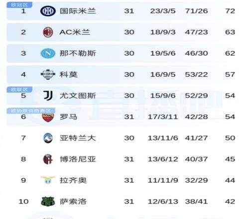 意甲第31輪,國米5-2輕取羅馬,終結(jié)連勝3輪不勝,先賽9分領(lǐng)跑。羅馬先賽仍54分,距離歐冠區(qū)3分。米蘭本輪會對上那不勒斯。