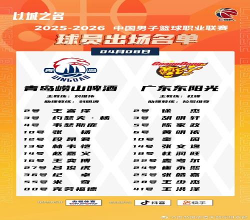 體育播報4月8日宣 今晚19:35,廣東客場挑戰(zhàn)青島,賽前雙方公布了本場大名單。