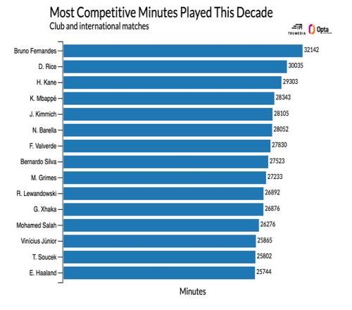 曼聯(lián)場(chǎng)上場(chǎng)下完全是兩支球隊(duì):他在場(chǎng)凈勝17球,不在場(chǎng)凈負(fù)1球。從2020年1月算起,他進(jìn)球70個(gè)、助攻67次、創(chuàng)造638次機(jī)會(huì),隊(duì)內(nèi)第二名的數(shù)字分別是48、22、190。換句話說,這不是核心,這是單核。