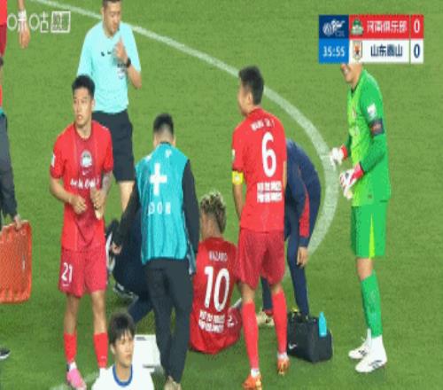 體育播報04月11日宣 中超第5輪,河南vs泰山。第36分鐘,納薩里奧在與高準翼爭搶時受傷,被擔架抬離球場。