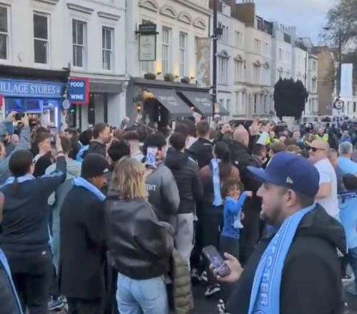 根據(jù)《太陽報》發(fā)布的視頻,在戰(zhàn)勝切爾西后,曼城球迷聚集在倫敦街頭,肆意慶祝勝利。