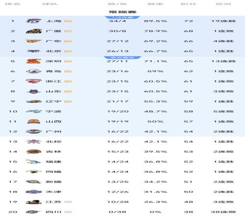隨著廣東逆轉(zhuǎn)寧波,北京大勝青島,CBA最新排名如下:9隊(duì)進(jìn)季后賽
