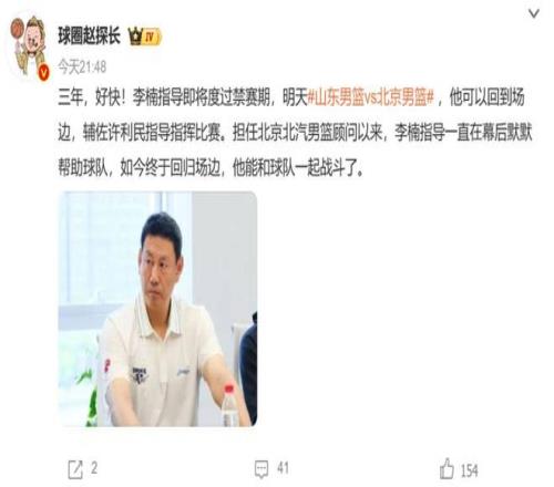 結(jié)束3年禁賽!李楠回歸賽場(chǎng)繼續(xù)輔佐許利民,隨時(shí)等待“篡位”