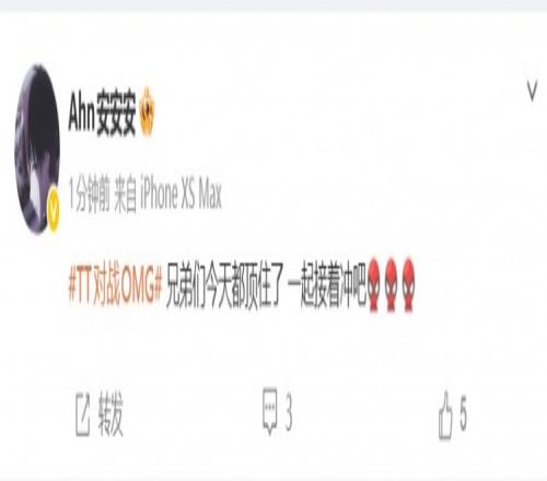 體育播報(bào)4月17日宣 LPL第二賽段TT以2-1戰(zhàn)勝了OMG,賽后TT下路選手Ahn更新了社媒:兄弟們今天都頂住了,一起接著沖吧。