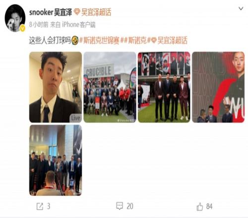吳宜澤曬斯諾克世錦賽種子選手合影,調(diào)侃:這些人會(huì)打球嗎