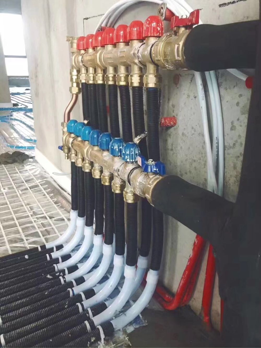 2、打開地板供水管與回水管之間的閥門,使回水進入地板供水管路中