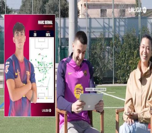 你適應(yīng)得很快,隊(duì)友們也很歡迎你。不過(guò)在這里我們總會(huì)給球員準(zhǔn)備一些小挑戰(zhàn)。我們來(lái)考考你,看你對(duì)隊(duì)友了解多少。我們準(zhǔn)備了五張你隊(duì)友的傳球圖,你來(lái)猜猜是誰(shuí)。第一張,這是對(duì)奧薩蘇納那場(chǎng)比賽,你們2-0贏球,拉菲尼亞梅開(kāi)二度。從圖上看好像是一個(gè)中場(chǎng),但其實(shí)不是。