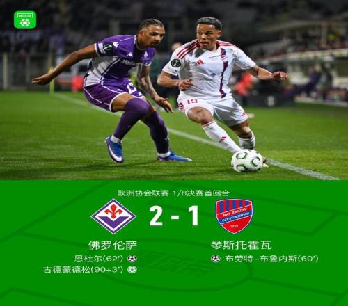 北京時間3月13日歐洲協(xié)會聯(lián)賽 1/8決賽首回合,佛羅倫薩對陣琴斯托霍瓦。下半場布魯內(nèi)斯首開記錄,兩分鐘后恩杜爾世界波扳平比分,補時階段阿梅亞烏手球送點,古德蒙德松點射絕殺。最終比分佛羅倫薩 2-1 琴斯托霍瓦。