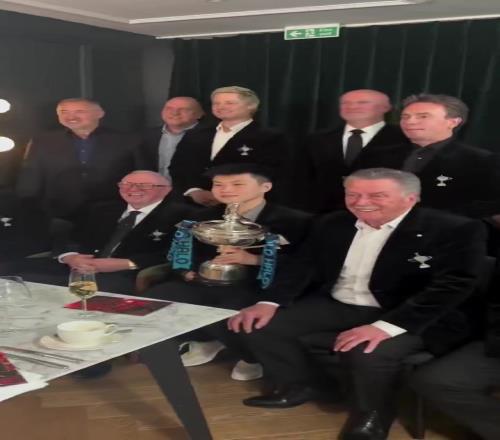 無比榮耀!趙心童手捧世錦賽冠軍獎杯,與眾多世界冠軍合影留念