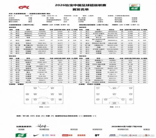 中超聯(lián)賽第6輪大連英博海發(fā)VS河南俱樂部彩陶坊首發(fā)及替補(bǔ)名單