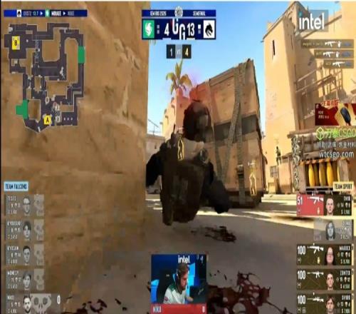 圖二是Falcons選擇的Mirage!上半場Spirit防守方丟掉手槍局后zont1x吹風機三殺秒翻,隨后sh1ro兩回合6殺擴大優(yōu)勢。中期tN1R和donk、sh1ro連續(xù)在拱門位置拿到擊殺、Falcons僅僅靠TeSeS的發(fā)揮啃下兩分,半場Spirit以8-4領先。