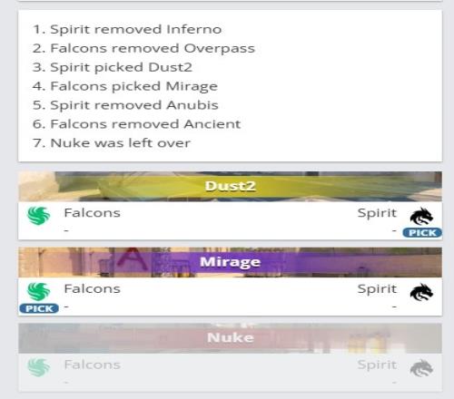 圖二選圖 Falcons選擇Mirage荒漠迷城(Spirit選擇CT方開局)
