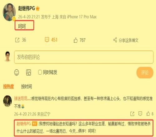 隊長趙繼偉作為遼籃的絕對核心球員,他在賽后也對對陣上海隊的這場比賽發(fā)表了個人看法。